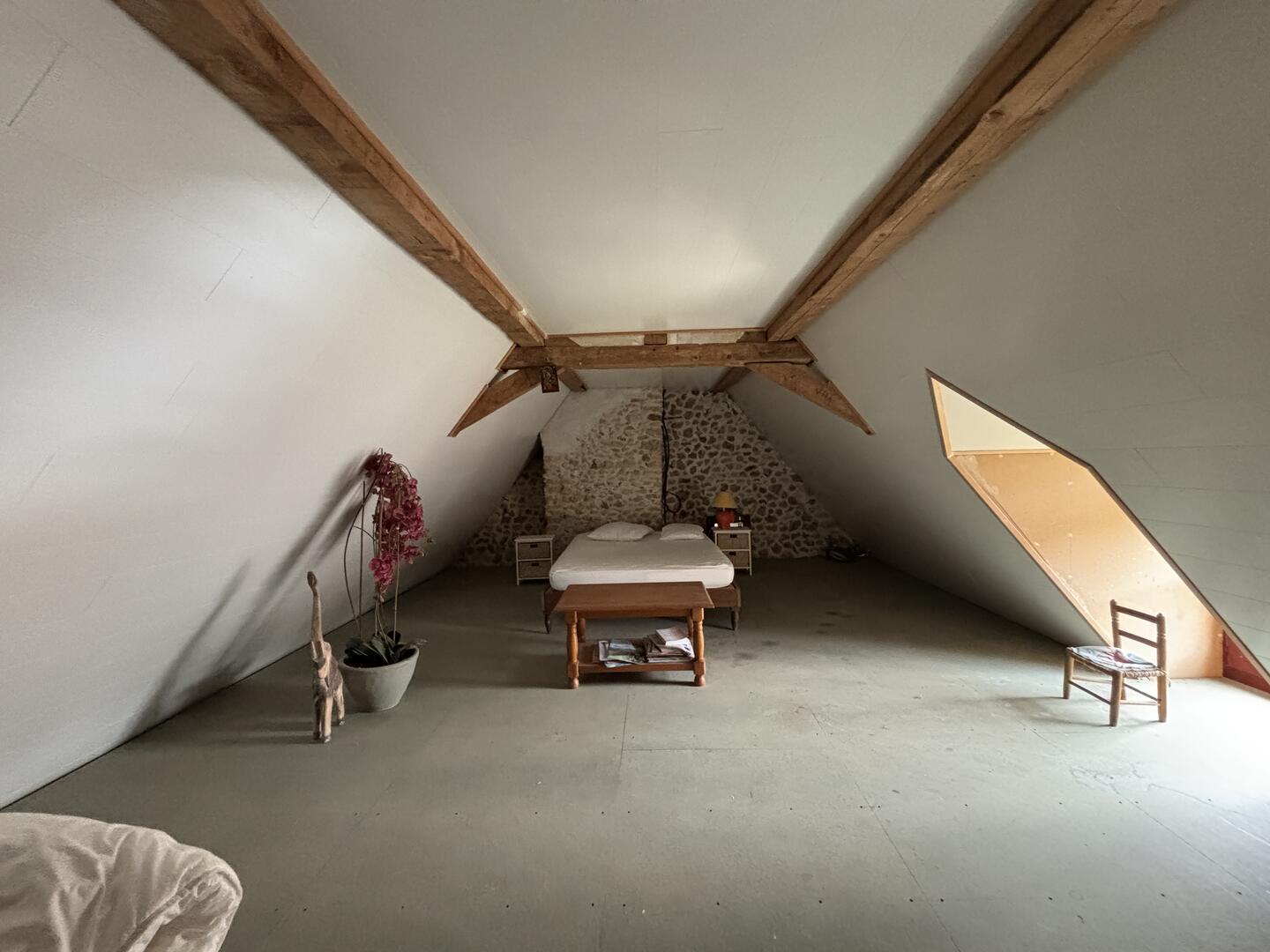 - Chambre(s) de 18, 14, 9 et 7 m². Sol ciment. Revêtements de sol et finitions à prévoir.